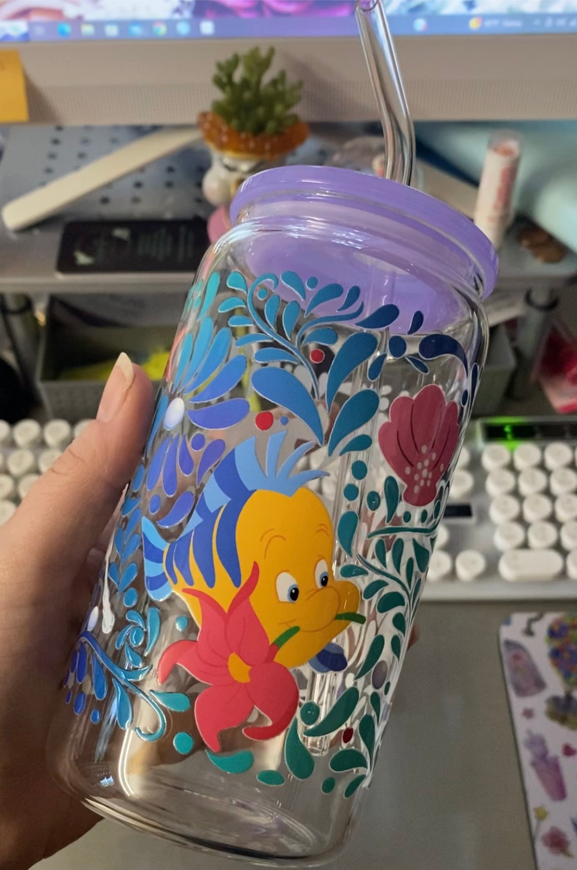 Under the Sea - 16 oz glass cup w/ straw